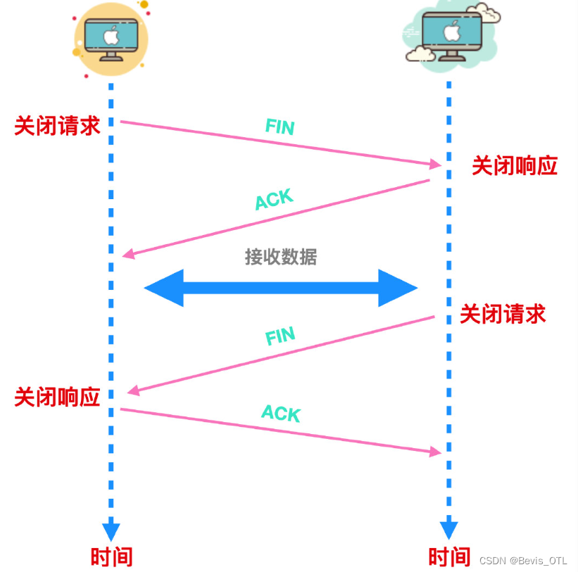 当通信双方不再需要收发数据时,需要断开连接。不同的应用程序断开连接的时机不同。以 Web 为例,浏览器向 Web 服务器发送请求消息,Web 服务器再返回响应消息,这时收发数据就全部结束了,服务器可能会首先发起断开响应,当然客户端也有可能会首先发起(谁先断开连接是应用程序做出的判断),与协议栈无关。