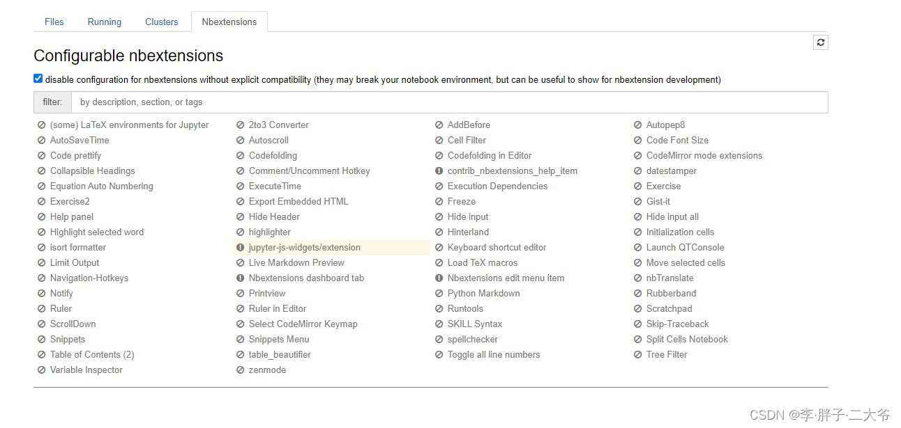 5.接着打开Jupyter Notebook ,会发现多了个Nbextensions;【如下图】