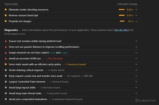 同时针对网站的信息,lighthouse还会给出一些完善建议: