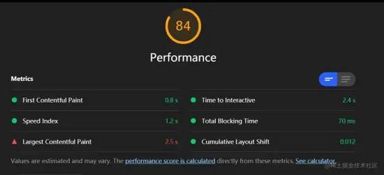 lighthouse是对网站整体的评估,通过几个不同的指标给网站进行打分。