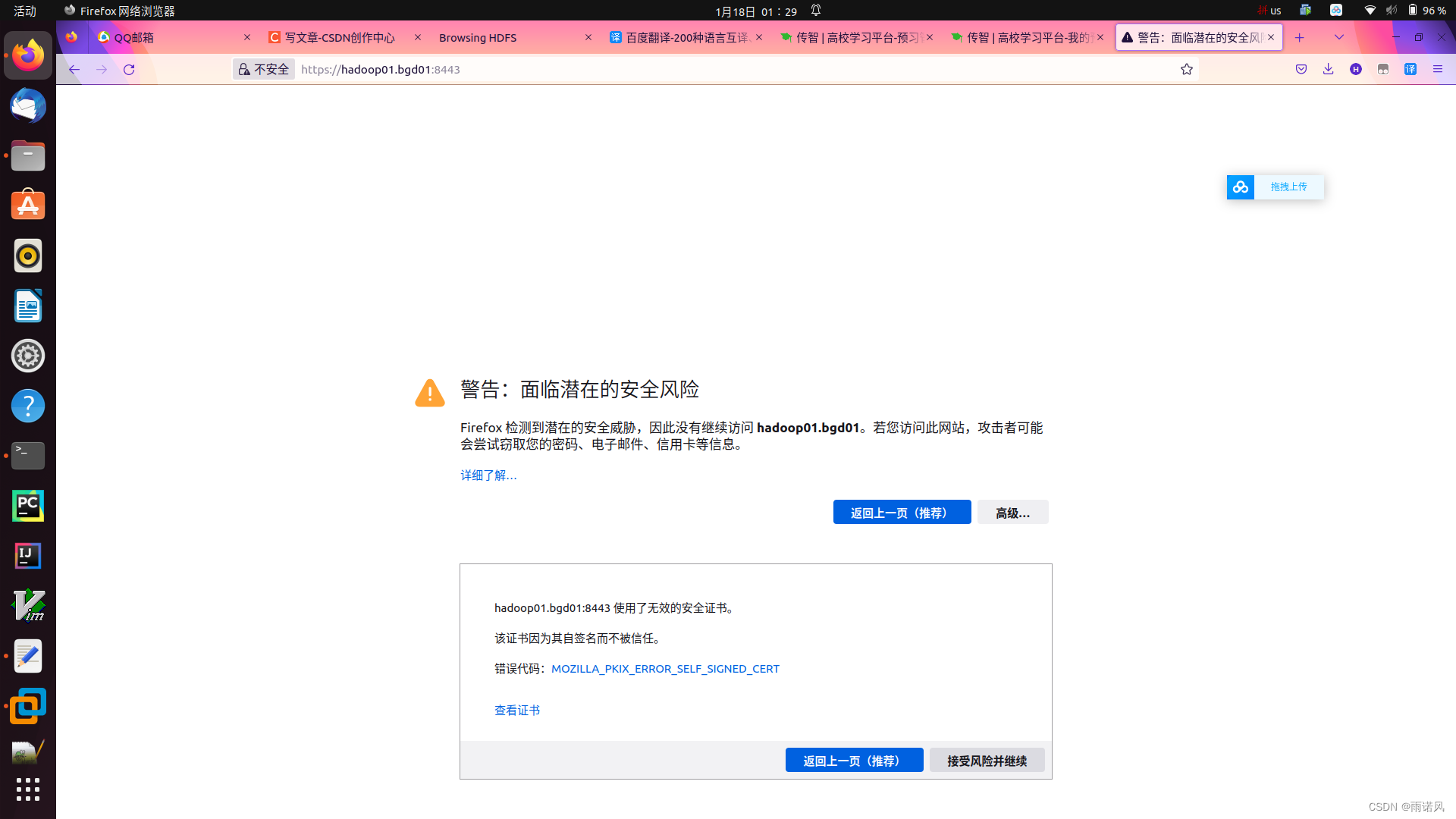 https://localhost:8443 这里需要注意第一次访问 UI 可能会出现警告,这里需要接受风险即可。