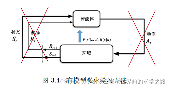 在状态s下采取a行动的奖励以及转移到状态S'的概率是无法获得的,在这种情况下,我们可以选择让主体不断与环境交互,采集大量的轨迹数据,从轨迹中获取信息来改进策略,从而获得更多的奖励。