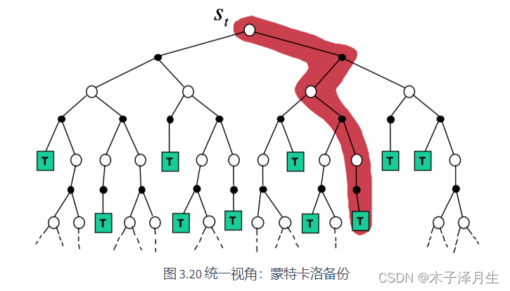 蒙特卡洛方法是通过随机生成多亮初始状态,随后根据策略来生成完整的轨迹,并记录下获得的奖赏。最后,根据每个状态下奖赏的期望值(即:某个状态下的未来期望总奖赏/该状态在轨迹集合的出现次数)作为该状态的值函数估计值。