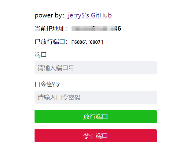 。。。接下来是flask部分,通过flask写了一个web通过口令来放行对应端口,如果其他读者有兴趣的话,我接着写。