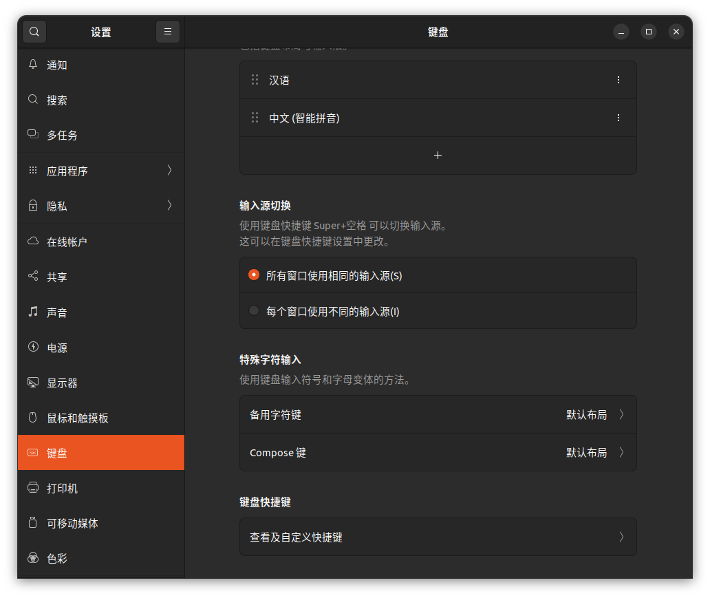 - 在Ubuntu的系统设置里面,找到“键盘”,再找到“键盘快捷键”,然后点开“查看及自定义快捷键”