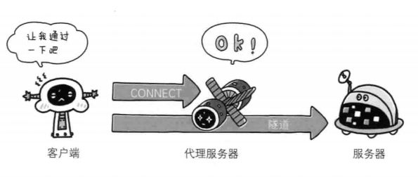 CONNECT方法要求在与代理服务器通信时建立隧道,实现用隧道协议进行TCP通信。