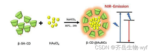有研究使用巯基-β-环糊精(β-SH-CD)作为还原剂和保护剂,通过一锅法合成一种新型的具有近红外发射的金纳米团簇,其发射波长可达到795 nm。此外,对不同反应条件,尤其是碱性条件对其近红外发射的影响进行探讨,为合成近红外金纳米团簇提供了一种简单有效的方法。这种环糊精修饰的金纳米团簇同时具有主客体功能和强组织穿透能力的近红外发光,有望进一步探索其在药物运输和生物成像等领域的潜在应用。
