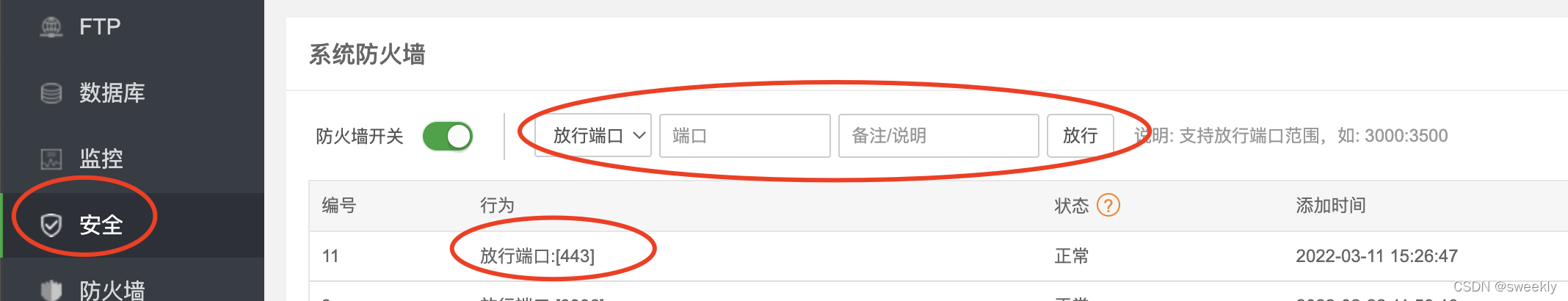 不清楚为什么宝塔安全端口那里已经添加了443,还需要重新添加一次,可能是部署ssl证书时,自动添加的443,但没有生效。