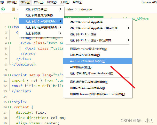 1. 找到HBuilderx菜单栏,点击运行,找到Android模拟器端口设置