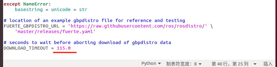 /usr/lib/python2.7/dist-packages/rosdep2/gbpdistro_support.py中将15改成115