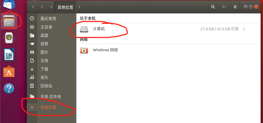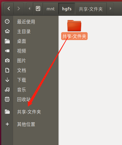 然后在虚拟机里/mnt/hgfs/能找到win对应的文件夹,为了方便可以把文件夹拖到左侧创建便捷书签。