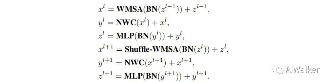 相比全局MSA,WMSA需要在计算自注意力之前进行窗口划分,在完成计算之后再进行窗口到图像的变换。然而,实际应用时额外的操作的计算复杂度是不能忽视的。除了窗口划分外,WMSA具有与全局MSA相同的架构。
