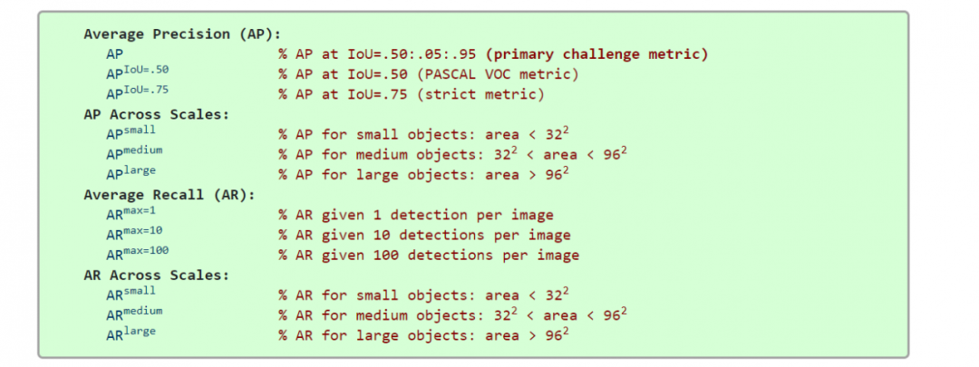 2014年,COCO数据集引入后,在原来的基础上提出新的评价标准mmAP,这个评价标准是先对所有类别的AP取平均得到mAP,然后再求0.5~0.95不同IoU阈值(step为0.05)下的mAP的均值得到最终mmAP。