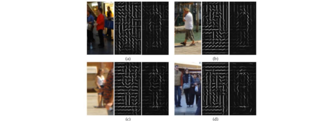 以下图的行人检测为例,从图像提取HOG特征,再把位置点乘上去,就可以得到很像人形的图片,可解释并且方便研究人员调试。