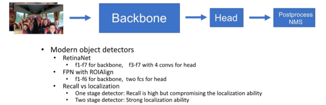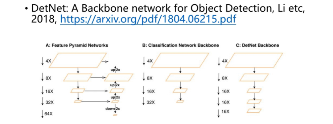 Backbone 在早期的论文中,基本所有的backbone都是基于分类任务设计的,分类任务相比检测任务对特征的分辨率要求不高,其好处在于感受域很大,但空间上的损失也会很多,这对检测很不友好。