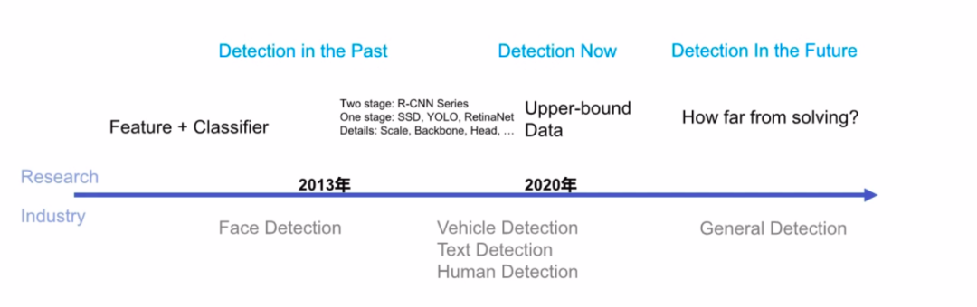 2020年开始,新方向的引出,使得深度学习研究者燃起了新的希望,那么,在未来多少年内可以真正解决检测问题(How far from solving)呢,是当下众多学者所关心的问题。从工业界领域来看,算法的实用性仍有不足,比如自动驾驶中检测的结果存在不稳定的抖动,遮挡严重的场景下检测效果不佳等。