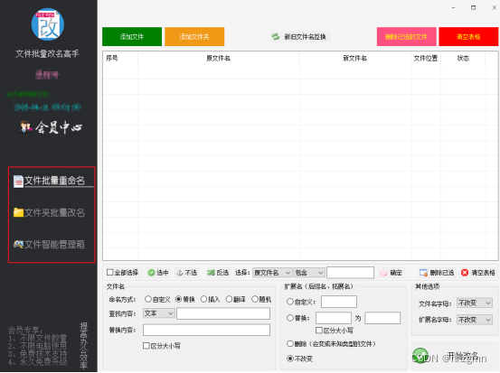 首先在电脑网址上下载一个文件批量改名高手,打开软件可以看到首页有三种项目选择。