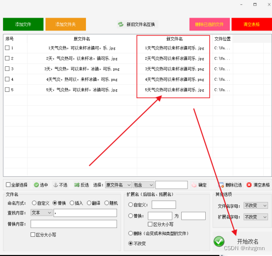 设置完成后就可看到右上角【新文件名】栏中已是新文件名,确认无误后就可点击【开始改名】