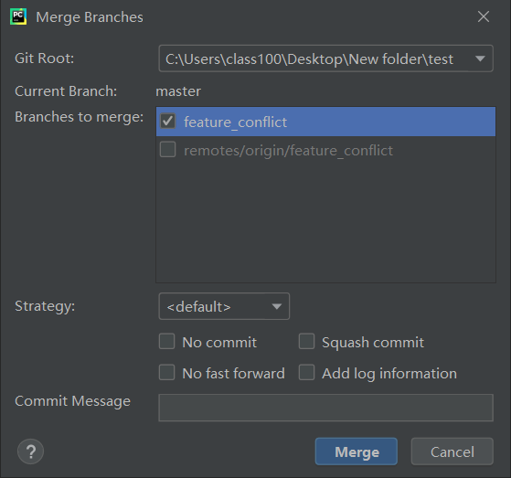 再选择分支,比如图中从 feature_conflict 合并到 master