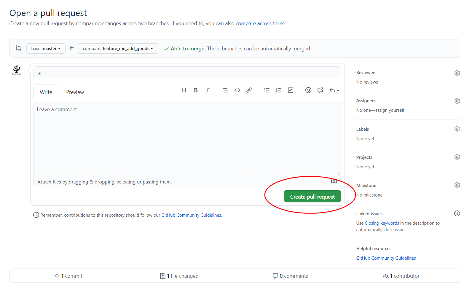 - 没有问题点击 Merge pull request 合并