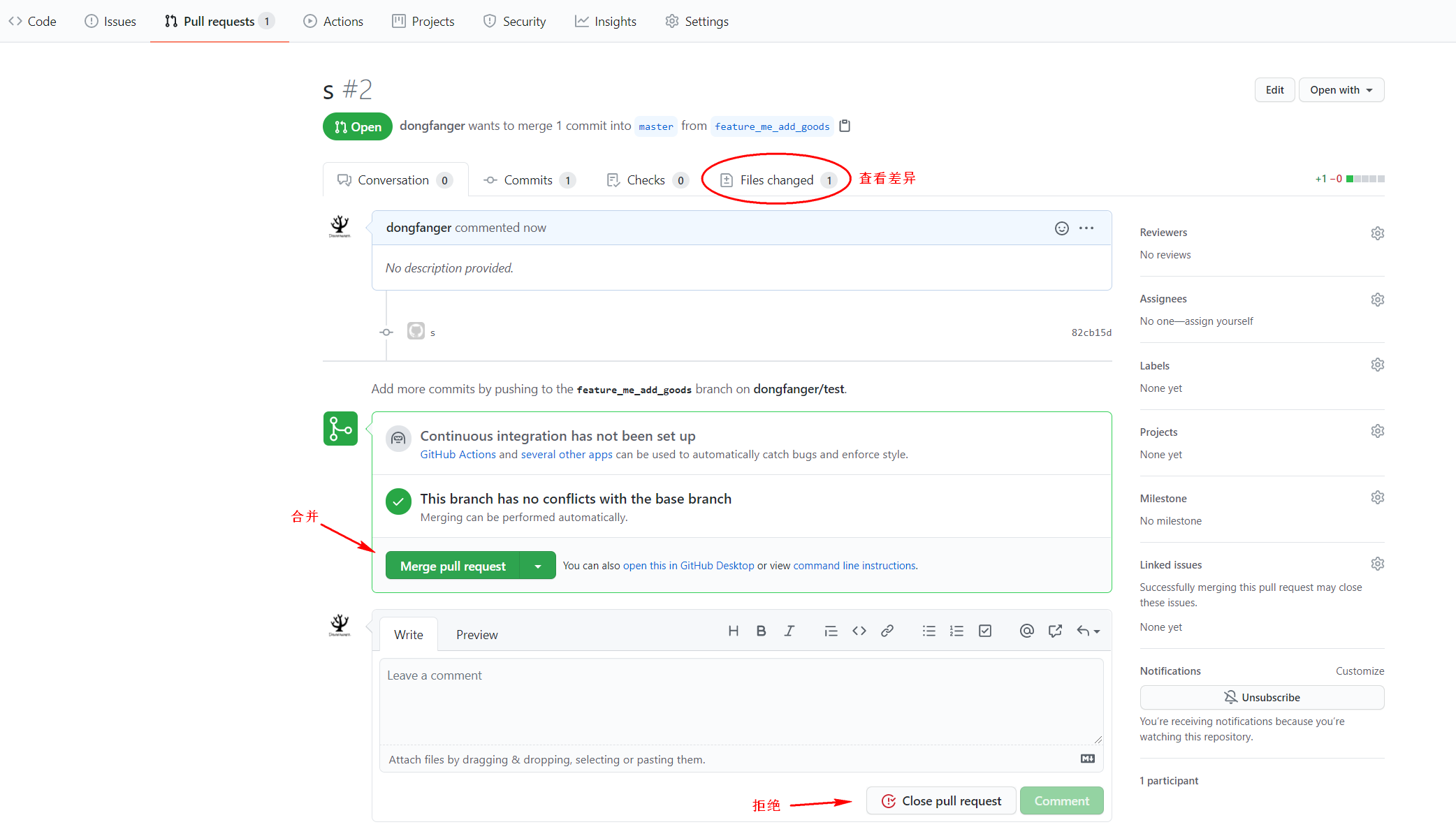 - 审核不通过点击 Close pull request 拒绝