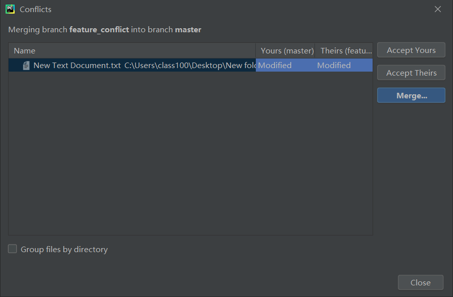 接着点击 Merge 按钮,会提示冲突