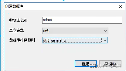右键点击左侧的root@localhost,点击创建数据库,数据库名称根据需求自拟,字符集选utf8,数据库排序规则选utf8_general_ci,点击创建