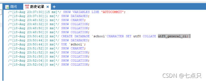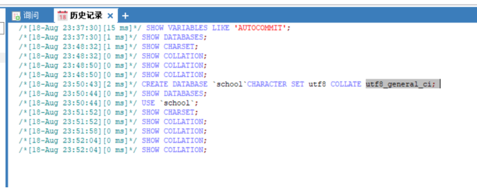 创建好之后,点击历史记录,可以看到相应的创建代码,点击询问,代码就在这输入,每一个sqlyog的执行操作,本质就是对应了一个sql,可以在软件的历史记录中查看