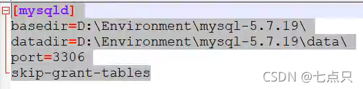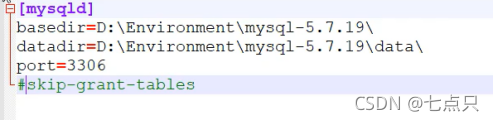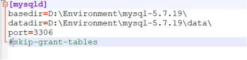 修改之前的my.ini配置文件,在文件的最后一行的前面加上#