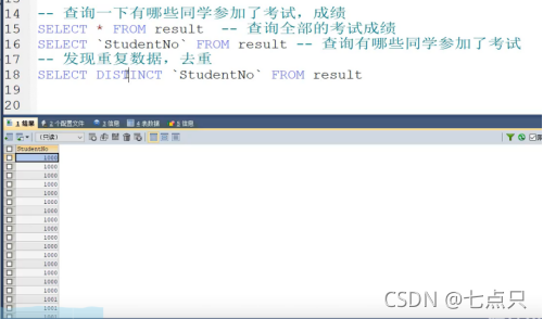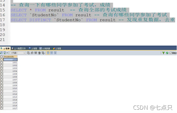 select去重要查询的字段from表(注意:表和字段可以取别名)