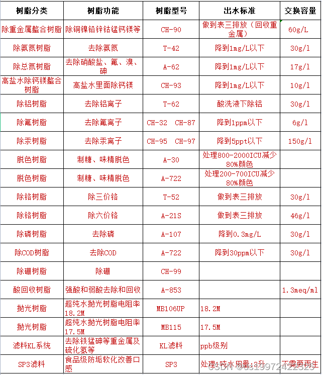 - 矮树脂床.....减少压力降和设备尺寸