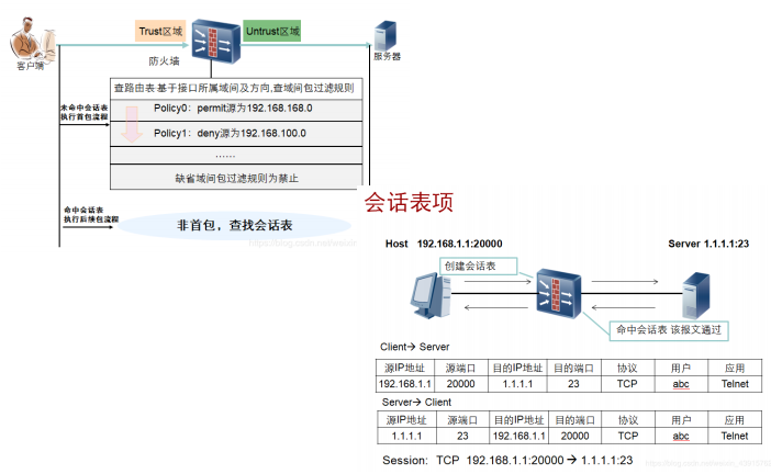 特点:操作简单,效率高,安全性比静态包过滤强。但是无法对应用层数据进行过滤。