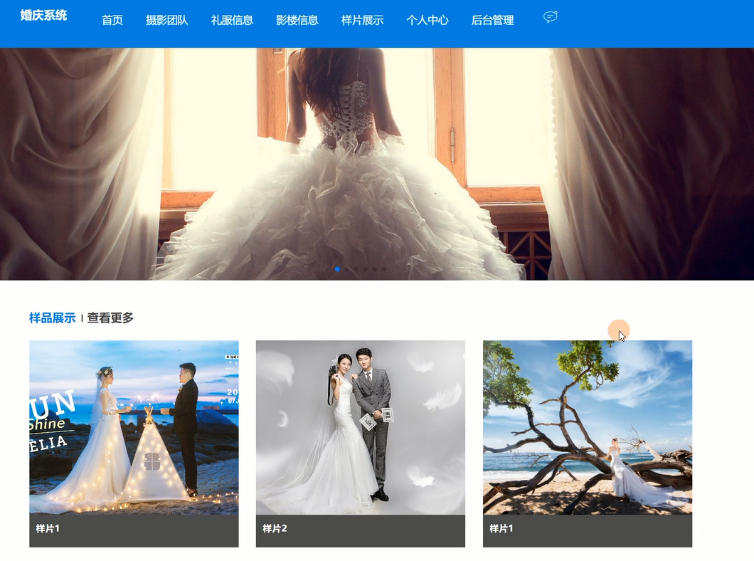 网站首页要有前端展示,展示一些婚庆的视频,图片