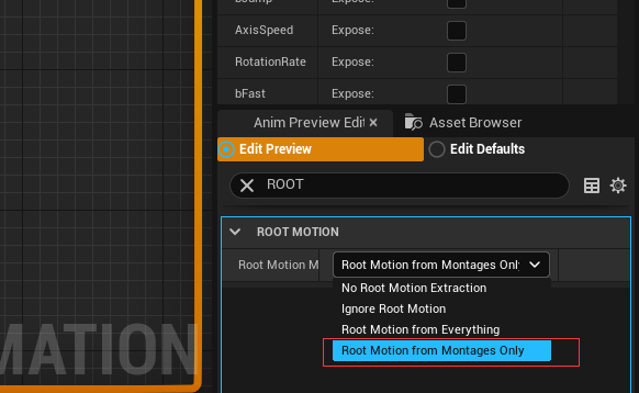 rootmotion必须支持montages 不要全部支持,否则有各种问题。