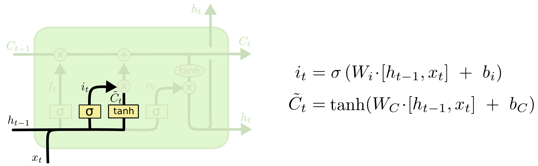 根据上一时刻的输出状态h t-1 和当前时刻的输入xt ,我们需要确定有多少长期记忆Ct-1 需要抹掉,这个遗忘的比率就是