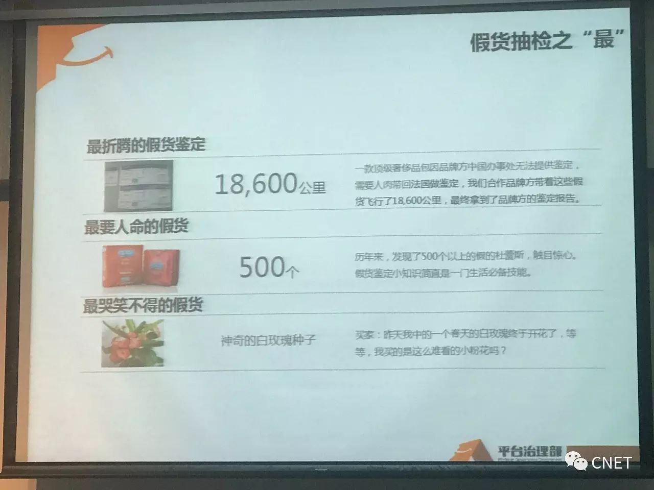 一系列数字背后,是阿里打假的决心。回忆去年打假过程,抽检团队负责人秦僧(花名)感触颇大,形容“这是一场攻与防的战役”。他现场介绍,尽管阿里升级了图像算法,识别品牌商logo,识别价格,搜索词,然而被打下架的假,竟换了副面孔重新上架,卖家不断更换信息,更换发货地,重新将假货以更隐蔽的方式、更多元化的形式发到网上,误导消费者。