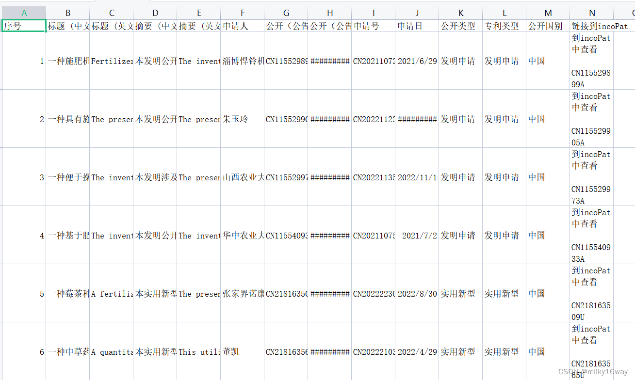 以IncoPat专利数据库为数据来源,通过构建检索式(IPC=(A01C15/00)) AND (PD=[20220101 TO 20230101])筛选出2022年施肥机械相关的数据,共获取到1901条专利数据。