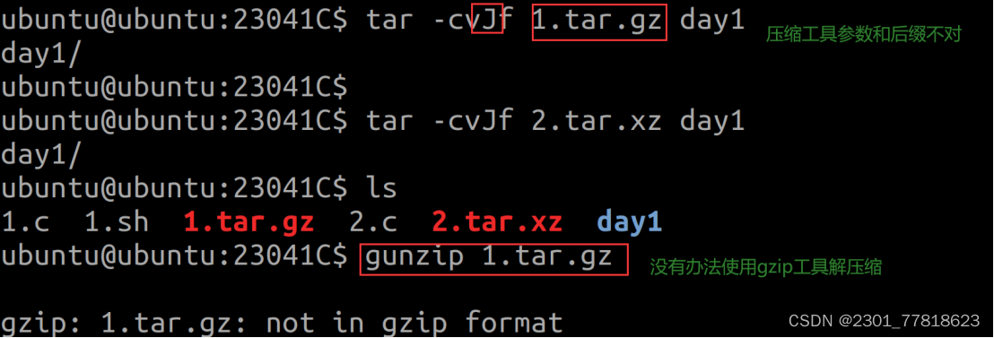 - 压缩工具的参数和文件的后缀,必须严格对应,如果不对应,不会报错但是生成的不是压缩包