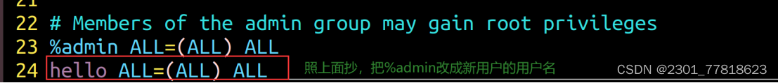 - 给新用户添加sudo权限