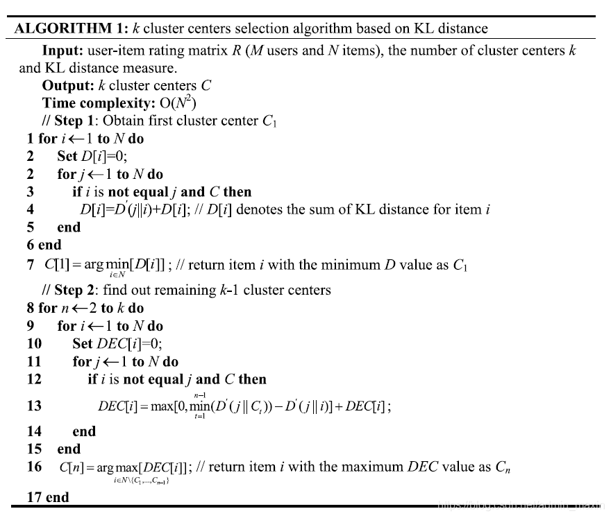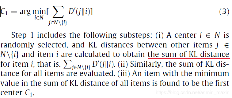 【基于KL散度的聚类中心选择算法的步骤】 共k个聚类中心