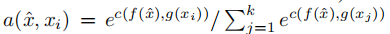 方程一依赖于注意力机制a的选择,它完全指定了分类。最简单的形式是在余弦距离上使用softmax,