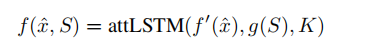 是从网络中产生的特征,输入到LSTM中,K是LSTM展开步骤(unrolling steps)的固定数目,g(s)是我们得到的集合使用g嵌入。这允许模型去忽视在支持集S中的一些元素,但是把深度加入到attention的计算中。