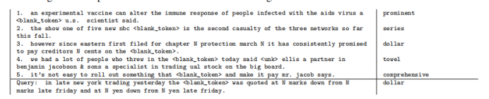 Two related tasks are the CNN QA test of entity prediction from news articles [5], and the Children’s Book Test (CBT)。