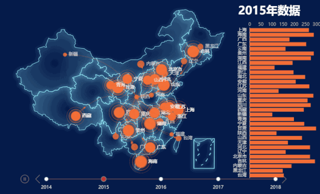 3、百度Echarts支持在线生成可视化地图,社区有大量精美案例可供选择,简单编辑数据即可