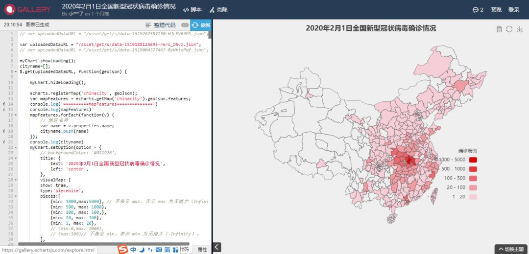 注:上述两个可视化地图案例均选自Echarts的gallery社区
