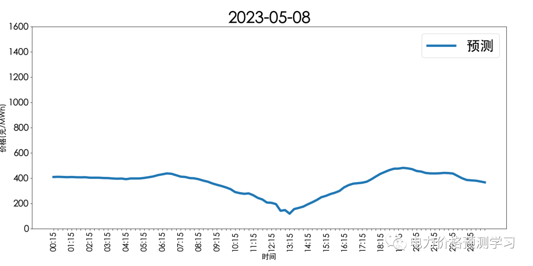 预测明日(2023-05-08)山西电力市场全天平均日前电价为360.84元/MWh。其中,最高日前价格为482.00元/MWh,预计出现在19: 30。最低日前电价为119.34元/MWh,预计出现在13: 15。