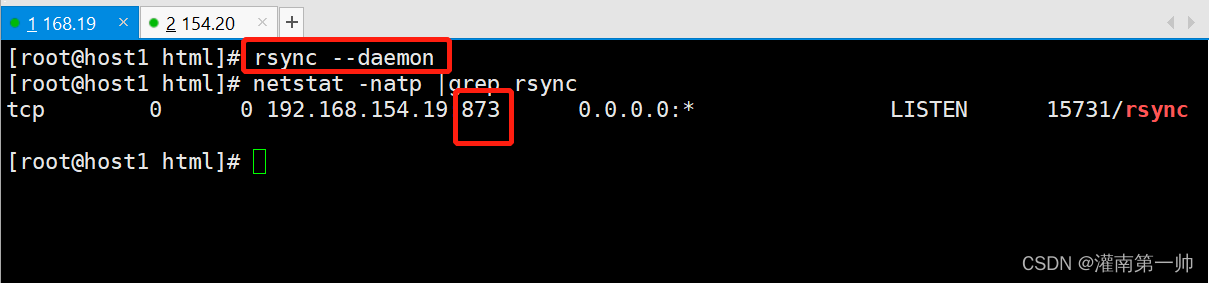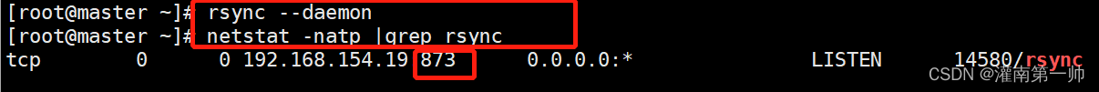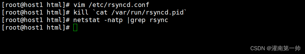 #修改完配置文件需要重启服务,这里采用直接杀掉进程号的方式netstat -natp | grep rsync