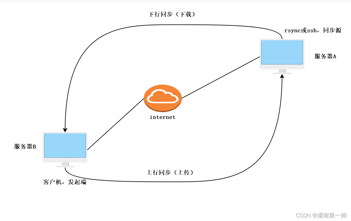 在远程同步任务中,负责发起rsync司步操作的客户机称为发起端,而负责响应来自客户机的rsync同步操作的服务器称为同步源(备份源)。在同步过程中,同步源负责提供文件的原始位置,发起端应对该位置具有读取权限。
