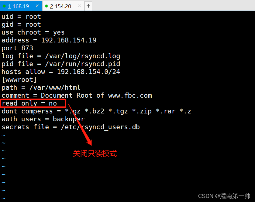 #关闭只读模式,否则将不可写入kill `cat /var/run/rsyncd.pid`