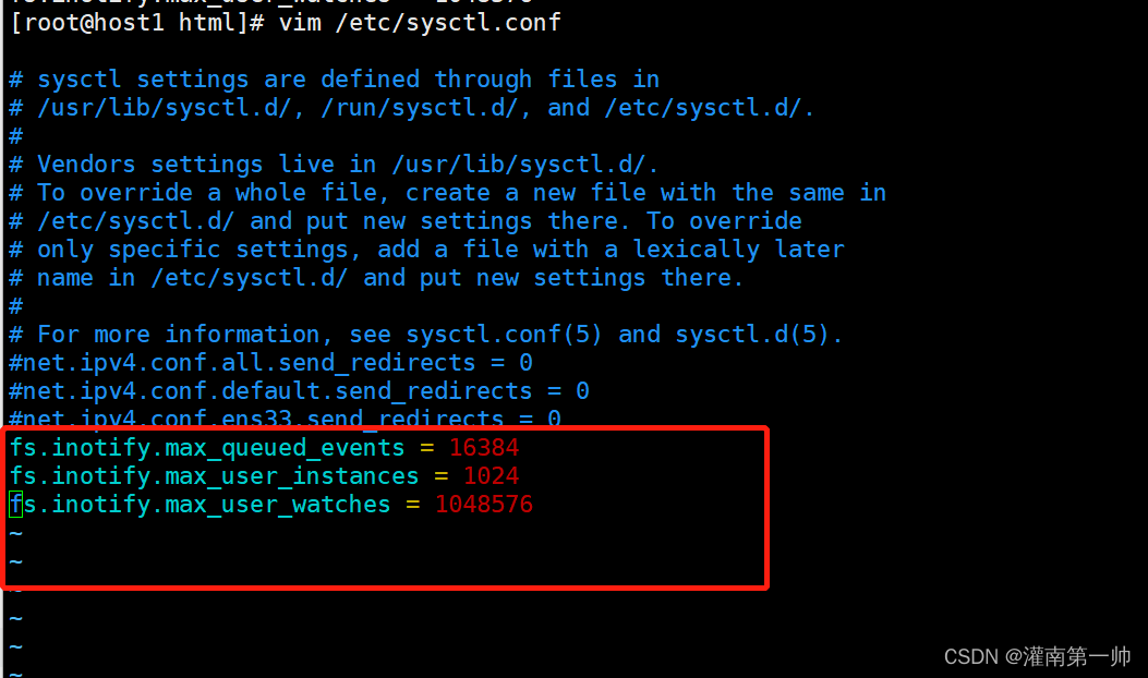 cat /proc/sys/fs/inotify/max_user_watches #每个实例最多监控文件数vim /etc/sysctl.conf #加大每个参数